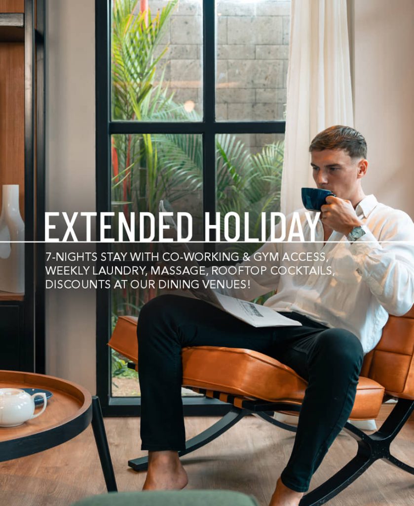 Settle into Berawa with comfort and ease. The Extended Holiday offers a 14-night stay designed for productive days…