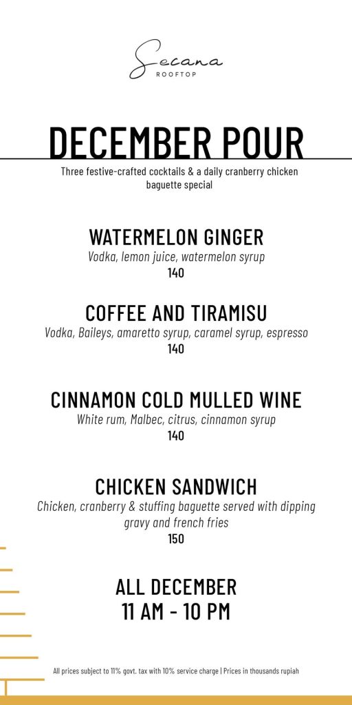 1–31 Dec | 11 AM – 10 PM | Secana Rooftop