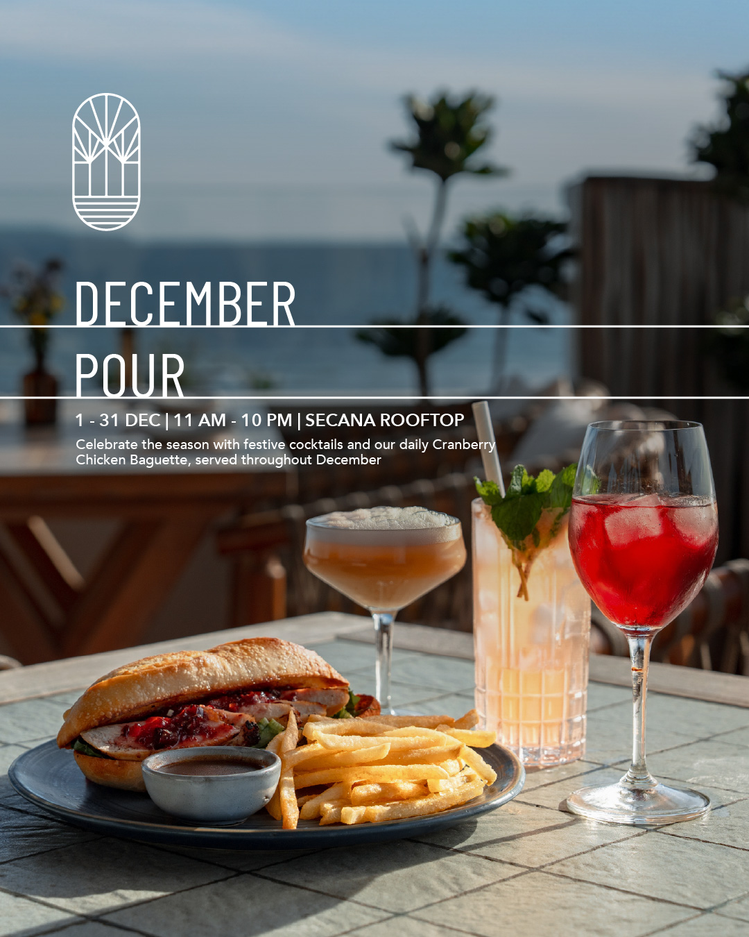 Celebrate the season with December Pour at Secana Rooftop — where open skies, ocean breeze, and elevated views set the perfect holiday mood.